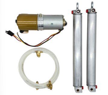 Convertible Hydraulic System. Two top cylinders, one motor pump, and a complete hose set available as a kit for a reduced price.
